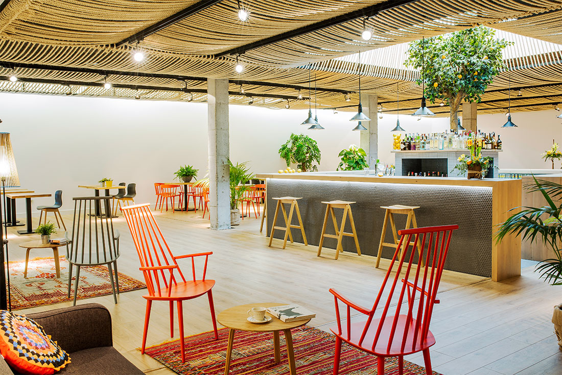 The design of the bar and the trasbarra -located under the skylight- is characterized by presenting clean and simple lines, materialized through glass mosaic coatings by Hisbalit.