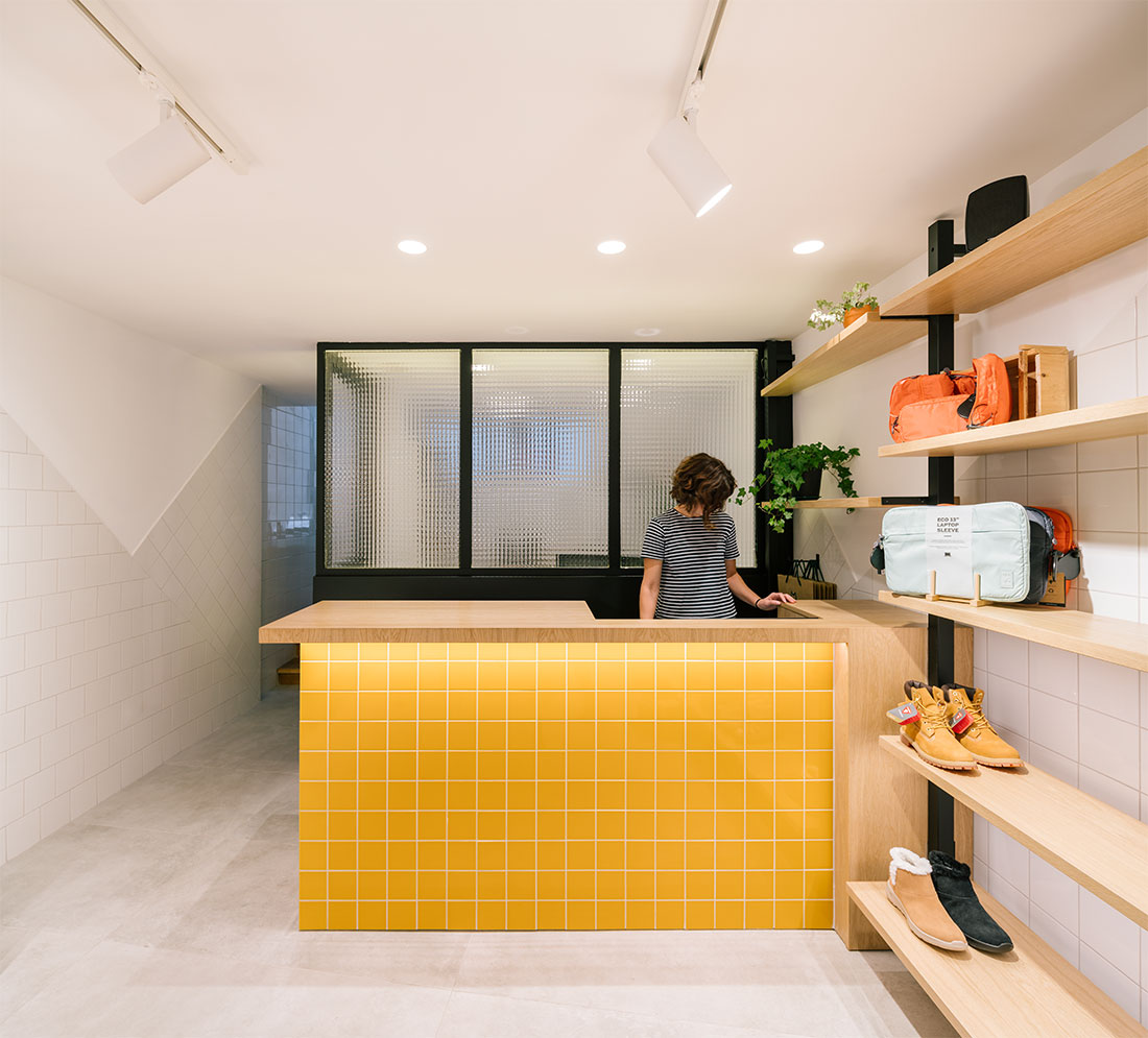 In this way, depending on the needs of product exposure, these shelves will change and modify the lateral elevations of the premises, changing the space each time. This is how the product becomes the authentic protagonist of this space.