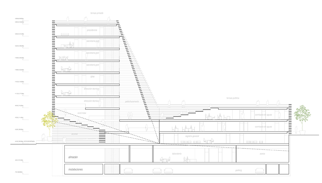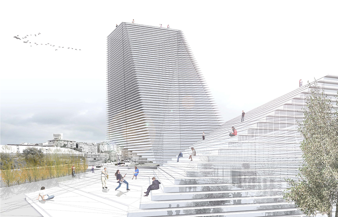 An urban piece, which aims to be part of the city and its functioning, and at the same time which justifies itself by the architectural and natural landmarks of the surroundings to which it is connected.
