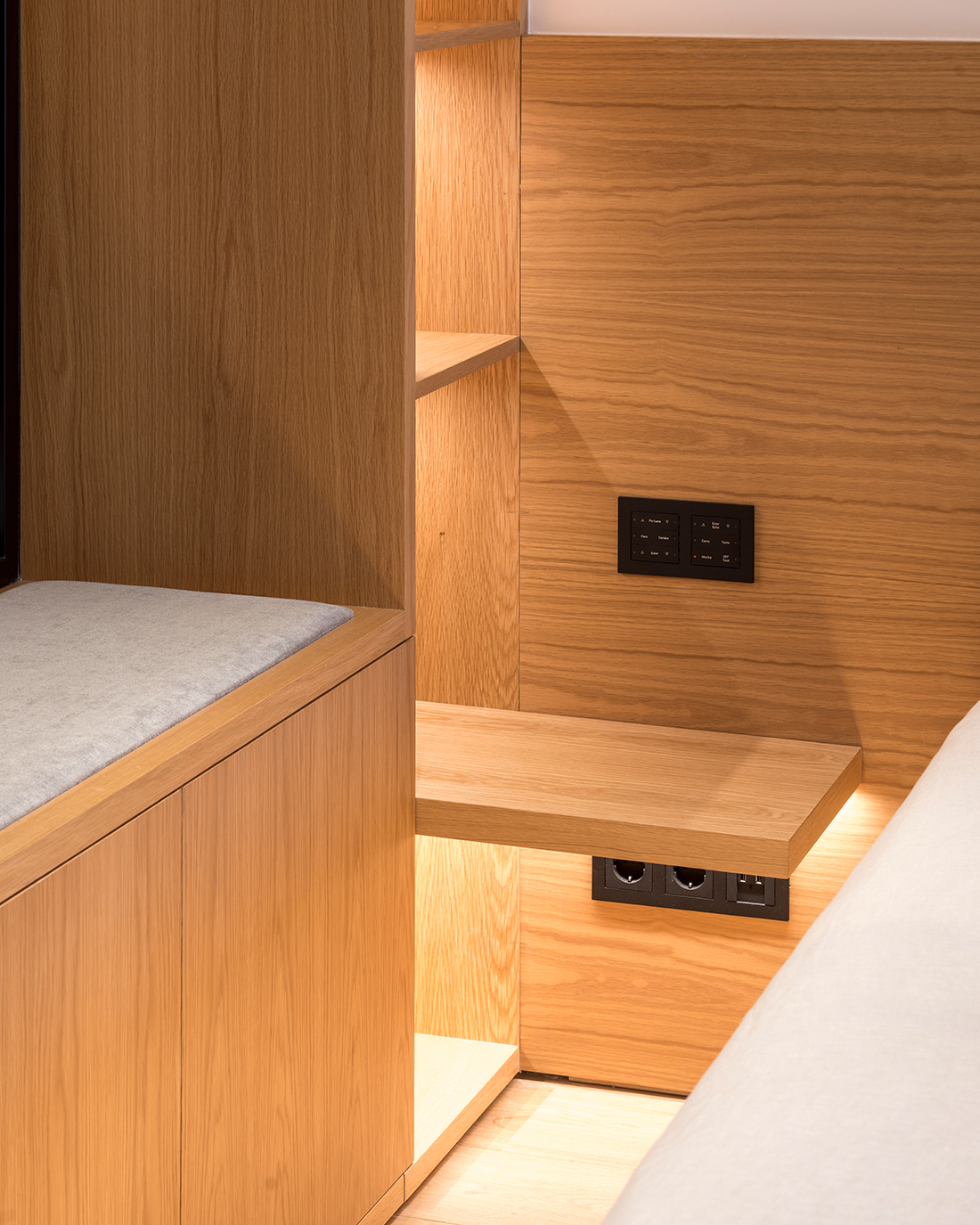 La integración es también espacial. La percepción de los ambientes principales da siempre como resultado un único espacio despojado de lo superfluo o accesorio, en el que habita la serenidad y la calma.