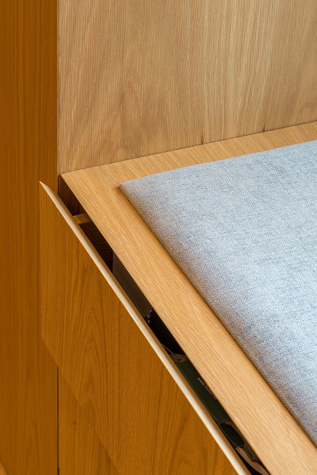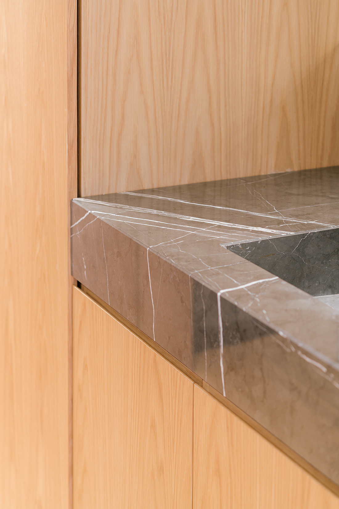 La dualidad madera/piedra materializa el espacio de forma delicada y armónica, simplificando radicalmente el lenguaje estético de la vivienda, aportando la dignidad propia de los materiales naturales, crudos, sin artificios.