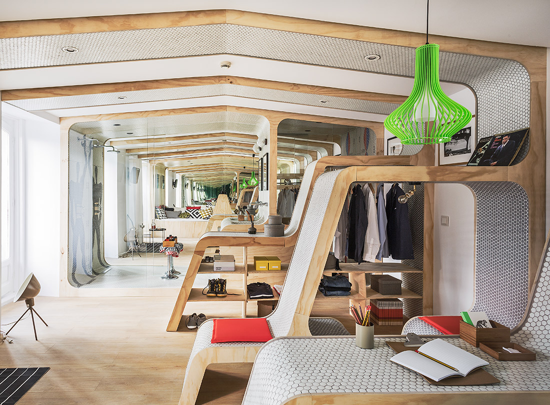 Modulor, es un dormitorio con pórticos modulares inspirado en el sistema de medidas desarrollado por Le Corbusier, el reconocido arquitecto Le Corbusier en los años 60, donde se recuperaba el antiguo ideal de establecer una relación directa entre las proporciones de los edificios y las del hombre. La teoría, inspirada en el ‘Hombre de Vitruvio’ de Da Vincci, sostiene que cada magnitud se relaciona con las demás según la proporción aurea.