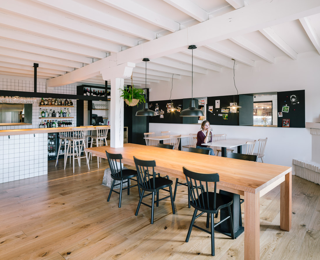 Está clara y marcada segregación de las diferentes zonas destinadas al disfrute de los usuarios (bar con cocina vista, comedor y comedor -terraza) en combinación con las múltiples conexiones visuales que existen entre ellas generan una experiencia peculiar, dado que cada vez que el usuario se encuentra en una zona el foco de atención se manifiesta en la estancia contigua.